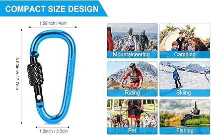 • Practical and widely ued for outdoor activity, camping, fishing, hiking, traveling, keychain etc. Please notice: The Locking Carabiner is NOT intended for climbing.